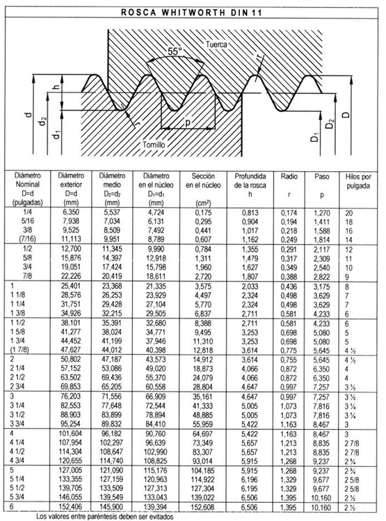 Rosca métrica de paso fino desde 1 hasta 55 mm. UNE 17704