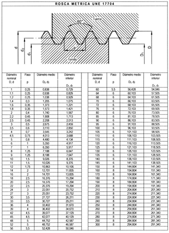 Rosca métrica de paso fino desde 1 hasta 55 mm. UNE 17704