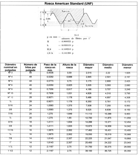 Rosca métrica de paso fino desde 1 hasta 55 mm. UNE 17704