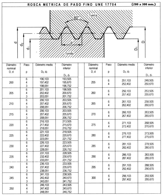 Rosca métrica de paso fino desde 56 hasta 195 mm. UNE 17704